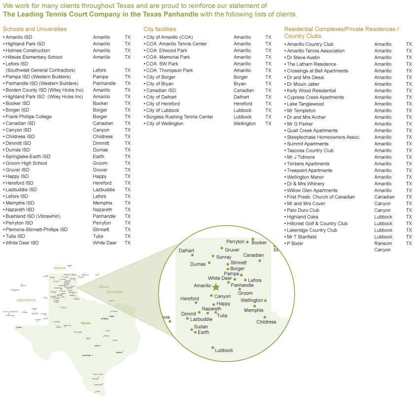 The leading tennis court construction and repair company in the Texas Panhandle.
